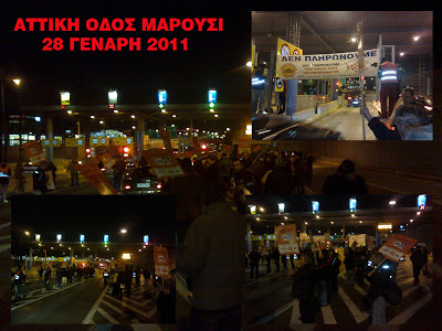Με προσέλευση εκατοντάδων συμπολιτών μας άνοιξαν απόψε τα διόδια της ΑΤΤΙΚΗΣ ΟΔΟΥ στο Μαρούσι. Εκατοντάδες αψήφησαν τον καιρό και προσήλθαν απο τις 5.30 στην προσυγκέντρωση της Κηφισίας (COSMOTE).